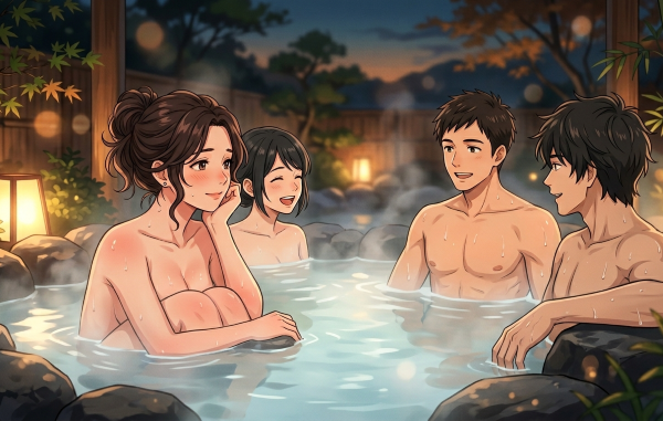 友人のカップルと混浴温泉でスワッピングをした